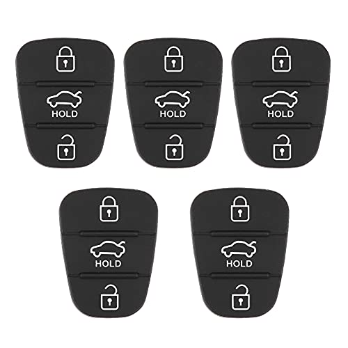 Qiilu 5 st ersättningsfjärrkontroll bilnyckel skal gummi 3 knappdynor med bokstäver som passar för Fit för för i30 nyckelbricka gummi i20 ersättning för fjärrkontroll