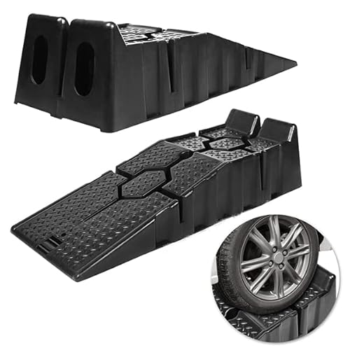 YUENFONG Bilramp i 2-pack, bilramper av plast för upp till 2,5 ton, perfekt för bilreparation i garage eller på parkeringsplats (90 × 31 × 22,5 cm, svart)