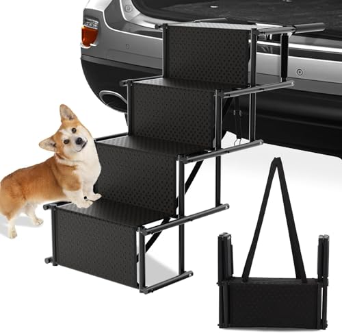 HEYOUTH Vikbar hundramp, 4 steg hundstege, bilramp, upp till 80 kg, stor hundstege med halkfri yta, för alla fordon, för stora och små hundar