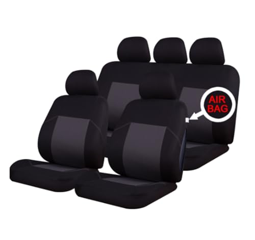 Sakura Bilsäte och nackstödsöverdrag Ealing SS5291 – komplett set svart universell storlek elastisk fåll sidokrockkudde kompatibel tvättbar enkel passform