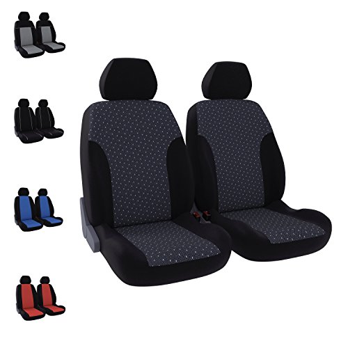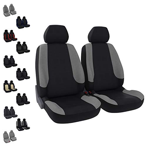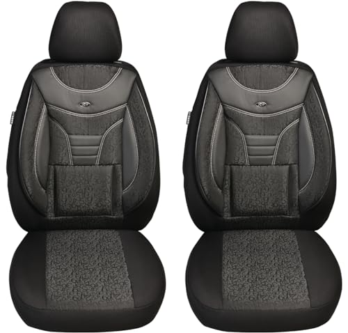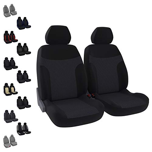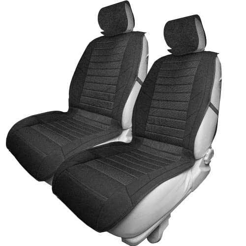 FH Group Bilsätesöverdrag främre set svart tyg – sätesskydd för låg rygg bilsäten med avtagbart nackstöd, universell passform, bilsätesskydd, airbag kompatibelt bilsätesskydd för SUV, sedan, skåpbil