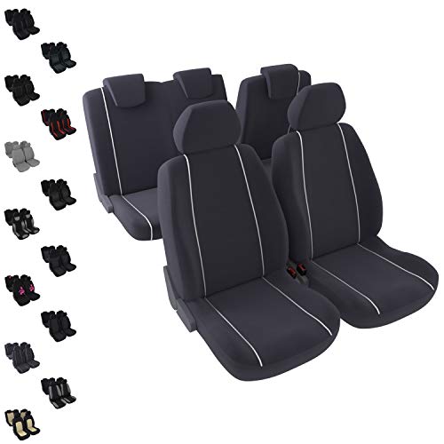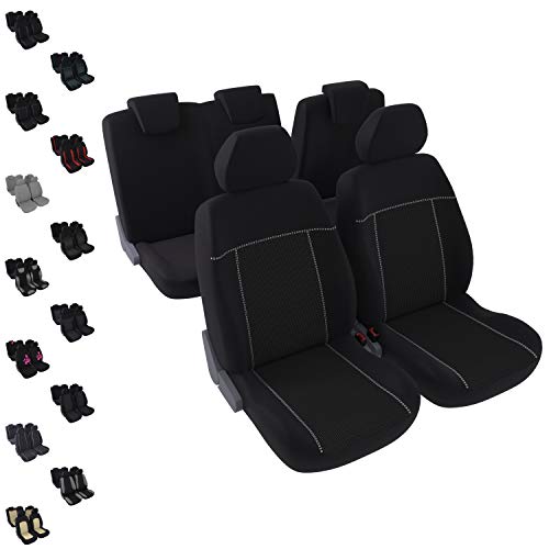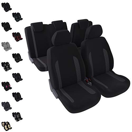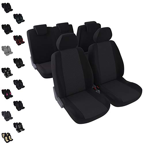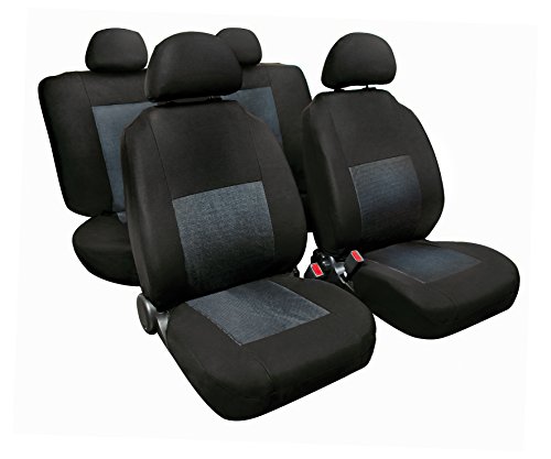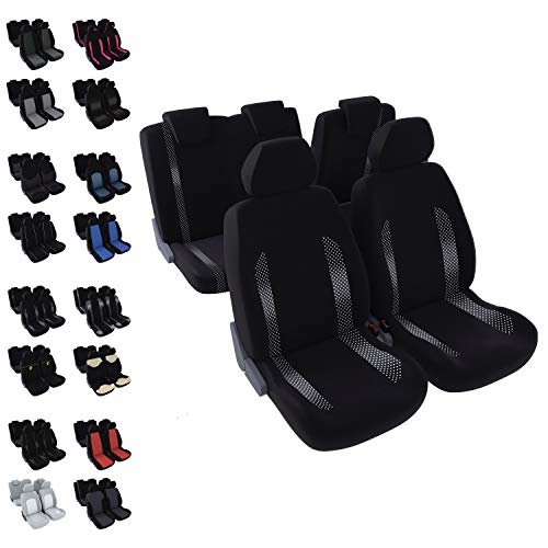 FH Group Bilsätesöverdrag fullt set svart premiumtyg – universell passform, fordon, låg baksäte, airbag kompatibel, delad bänk baksäte, tvättbar för SUV, sedan