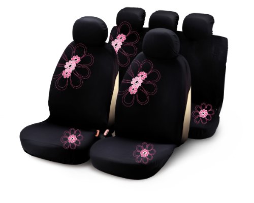 Bottari 29010 My Flower Swivel set med 9 st rosa blommor bilsätesöverdrag svart
