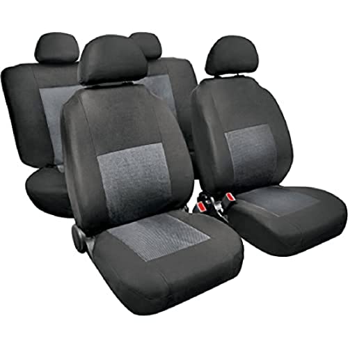 DBS - Bilsätesöverdrag | Skyddsöverdrag – personbil/bil – 5 säten – svart + grå – universal – halkfri – tvättbar