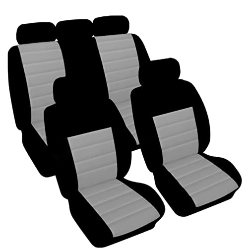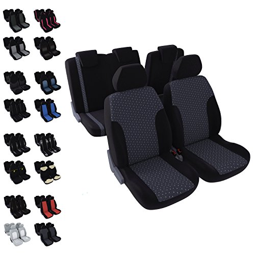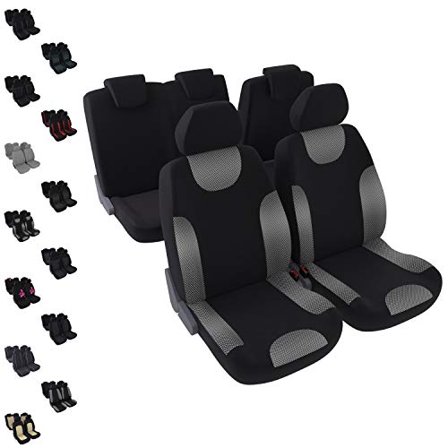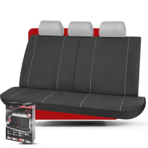 FH Group Bilsätesöverdrag komplett set grått premiumtyg – universell passform, bilsätesskydd med låg rygg, airbag-kompatibel, delad bänk baksäte, tvättbar, för SUV, sedan
