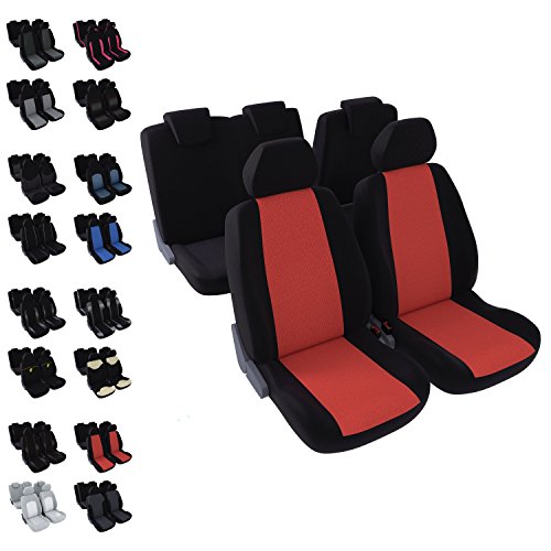 FH Group komplett set bilsätesöverdrag röd svart tyg – universell passform bilsätesskydd, 1 st framsätesskydd, massivt baksätesskydd, tvättbart bilsätesskydd för SUV, sedan, skåpbil, biltillbehör