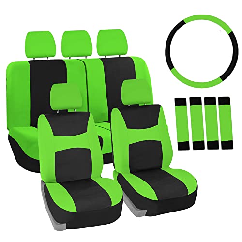 FH GRUPP Bilsätesöverdrag grön universell passform kombo set med rattskydd och säkerhetsbältesdyna passar de flesta bilar, SUV:er och lastbilar (krockkuddekompatibel och delad bänk) FB030GREEN-COMBO