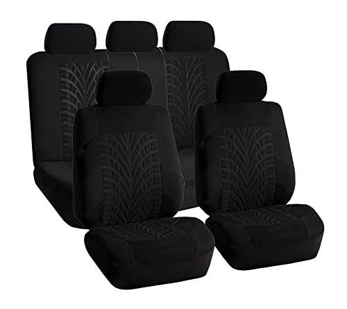 FH Group komplett set bilsätesöverdrag i tyg, universell passform, främre sätesskydd med låg rygg, airbag kompatibel, delat bakre skydd, tvättbart sätesskydd för SUV, sedan, skåpbil, svart
