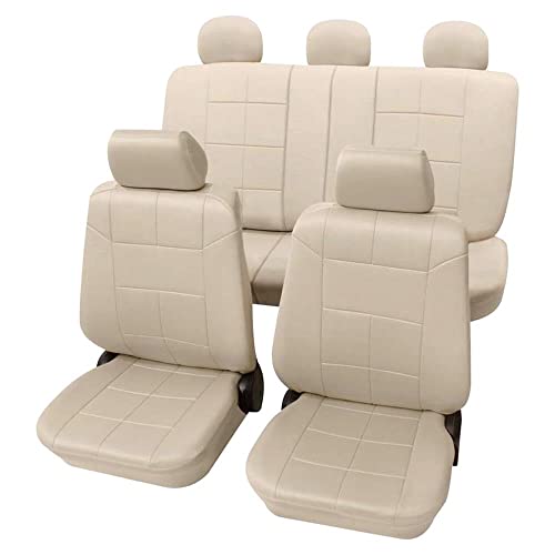 FH Group Bilsätesöverdrag komplett set premiumtyg – universell passform, fordon, låg rygg framtill, tvättbara sätesskydd, airbag kompatibel, delad bänk baksäte för SUV, sedan beige