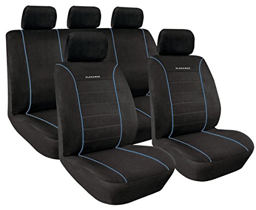 FH Group Bilsätesöverdrag komplett set tyg – universell passform, bilsätesskydd, låg baksäte, airbag-kompatibel, delad bänk baksäte, tvättbart bilsätesskydd för SUV, sedan, skåpbil blå