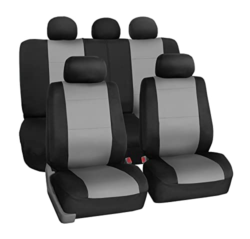 FH Group PU001GRAYBLACK102 universell passform främre set grå svart bilsätesskydd passar de flesta bilar, SUV:ar och lastbilar (fuskläder set med 2)