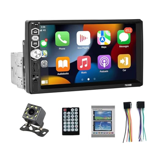 VIGORTHRIVE 1 Din CarPlay Android Auto Bilradio med 8 LED-backkamera, 7” HD-pekskärm Bilstereo Stöd Bluetooth/Mirror Link/FM/EQ/USB/AUX Rattkontroll