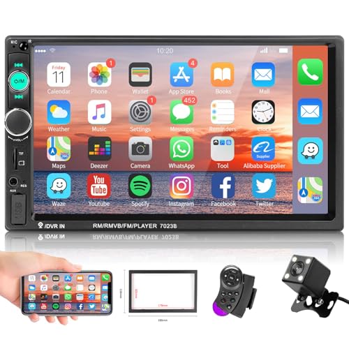 Dubbel Din Stereo, 7 Tums Bilstereo Bluetooth, Pekskärm Bil Multimedia MP5-Spelare Car Stereo med FM/Spegellänk/Rattfjärrkontroll/Backkamera