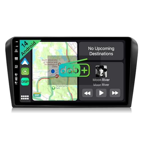 YUNTX Android 13 2 Din bilstereo for Mazda 3(2004-2012)- [Inbyggd DAB/CarPlay/Android Auto/DSP] -[4G+64G]-Extern MIC+Backkamera-Stöd Ratt kontroll/Bluetooth 5.0/360 Camera/USB/Fast-boot/RDS/GPS
