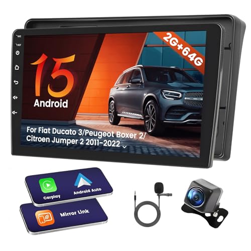 Inefala 2G+64G Android bilstereo för Fiat DUCATO/Citroen Jumper 2/Peugeot Boxer 2 2011-2022, 9" pekskärm Bluetooth bilstereo med trådlös Carplay och Android Auto GPS/WiFi/RDS/FM mikrofon backkamera