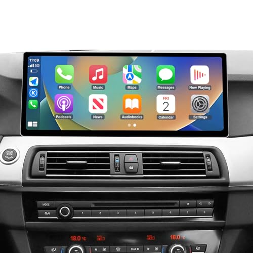 Road Top CarPlay-skärm, 12,3 tums bilstereo för BMW 5-serien F10 med CIC-system (2010-2011 år), bilradio med smal ram för CarPlay/Android Auto/MirrorLink