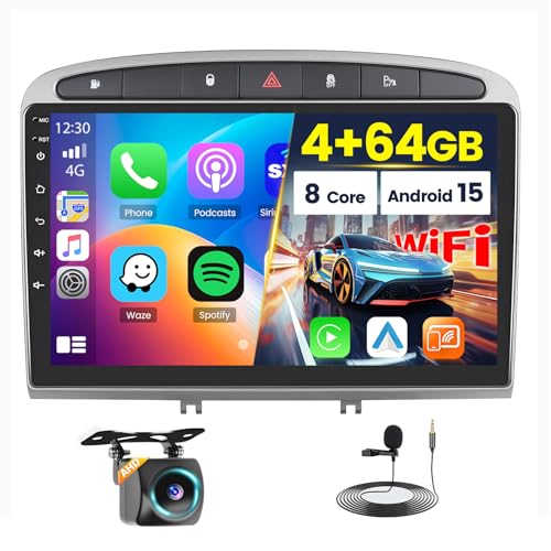 Hikity 4G 64G 8Core Android13 Bilstereo för Peugeot 308 308SW 408 2007-2015 Carplay Trådlös Android Auto 9'' Radio med GPS Bluetooth WIFI RDS DSP 3 Delad Skärm SWC Backkamera