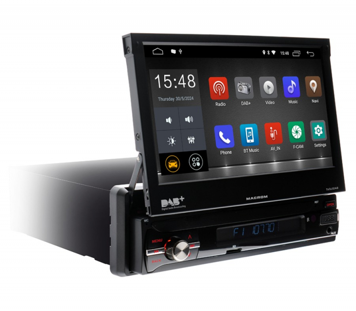 Macrom M-T6563DAB bilstereo med motoriserad skärm, Android 10 & me