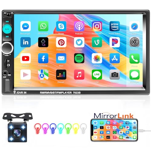Inefala bilradio 2 Din med skärm, 7-tums pekskärm Bluetooth bilstereo med spegellänk FM radio bakkamera USB/TF/AUX rattstyrning