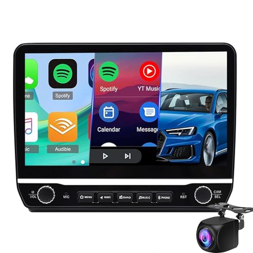 Carplay Skärm för bil, Hodozzy 10,2 tum bärbar bilstereo med trådlös Carplay och Android auto, 1080p backup-kamera, spegellänk, GPS, AUX, FM-sändare, dubbel Bluetooth, Goo-gle/Siri för alla fordon