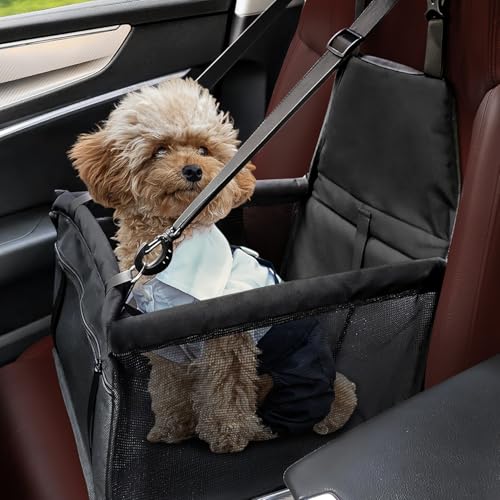 Pecute bilbarnstol för hundar – förstärkt hundbilstol, medelstor hund med andningsbart nät och justerbart hundsäkerhetsbälte, robust och vattentät bilstol för bilens baksäte