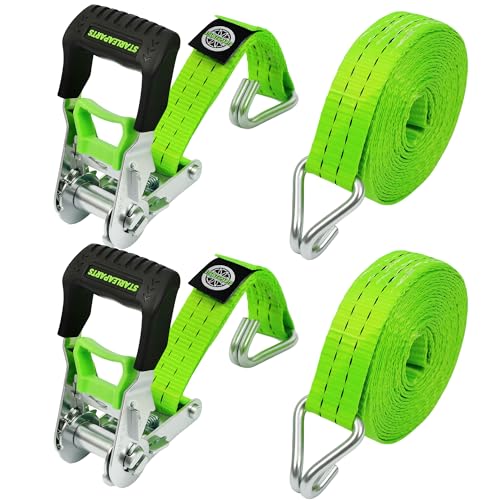 StarLeaparts 35 mm x 6 m spännremmar med spärrhake, 2 stycken, sidoinskjutning, spärrremmar, lätt att använda, DIN testad 2 000 kg spännband med krok för säker biltransport, grön
