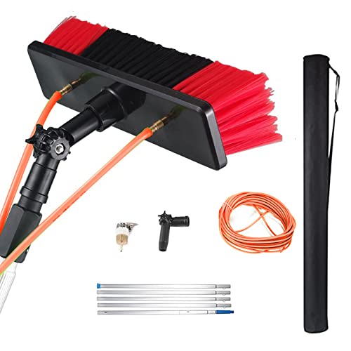 MENAYODA 5–10 m vattenledande teleskopstång, rengöringsborste med teleskophandtag, utdragbar för solcellspaneler, fönster, biltvättborste (5 m stång, 30 cm borst)