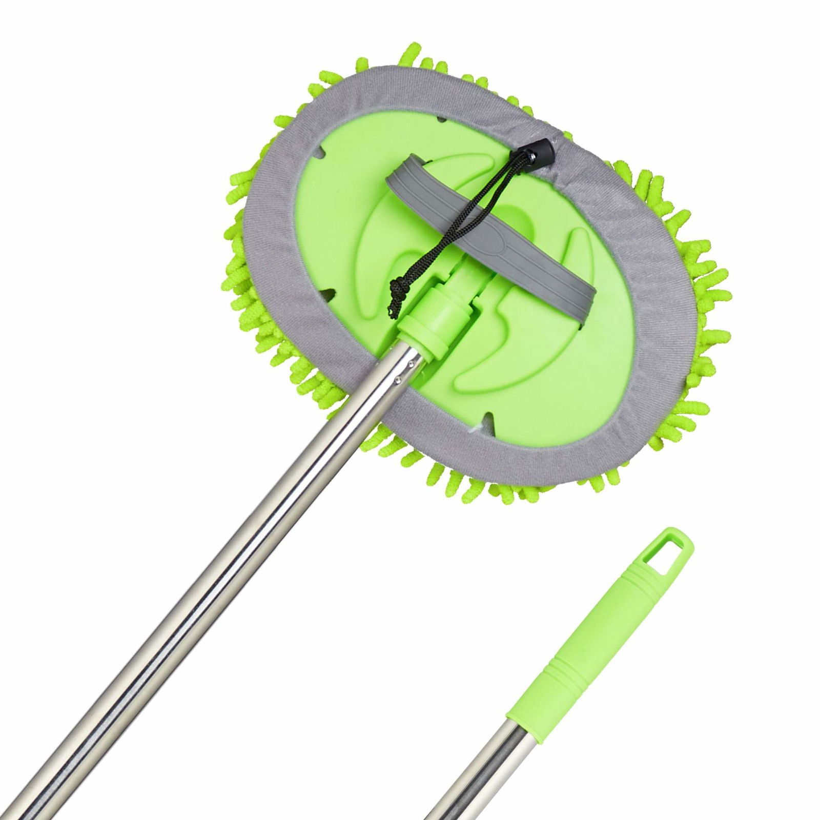 EclipseGuard Biltvättborste, teleskophandtag med 2-i-1 mikrofiber chenille, rengöringsborste för biltvätt, 2 mopphuvud, husbil