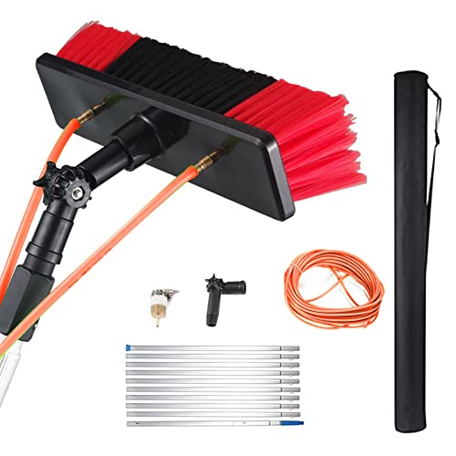 MENAYODA 5–10 m vattenledande teleskopstång, rengöringsborste med teleskophandtag, utdragbar för solcellspaneler, fönster, biltvättborste (10 m stång, 30 cm borst)