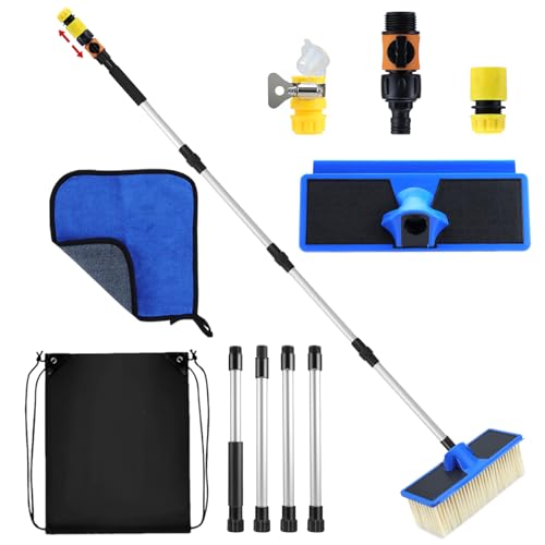 Feelhap Teleskopisk biltvättborste med handtag, teleskophandtag, vattenanslutning, 55–168 cm, med slanganslutning för husvagn, bil, lastbil, buss, skåpbil, husbil