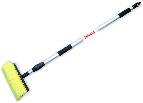 XPOtool Teleskopisk tvättborste 145-300 cm biltvättborste med slanganslutning borste med svamp och skrapa för biltvätt, husvagn, båt teleskopiskt skaft