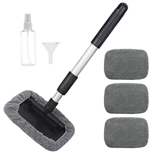 Biltvättborste med teleskophandtag, set med 4 tvättborstskydd, vindruterengörare bil vindrutor renare bilfönster innerrengöring, grå mikrofiberrengöringsborste bil rengöringsset