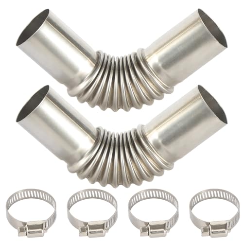 Vinkelanslutning för avgasrör, 2 stycken, i rostfritt stål, med två klämmor av rostfritt stål, för 25 mm-avgasrör, ventilationsslang, dieselvärmare, parkeringsvärmare, bilvärmare