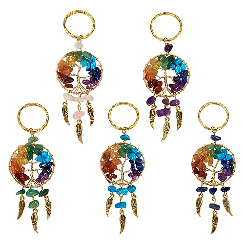 PandaHall 5 st livets träd berlocker ädelsten chip nyckelring hängen drömfångare dinglande ornament för bilväska hem hängande nyckelring smycken