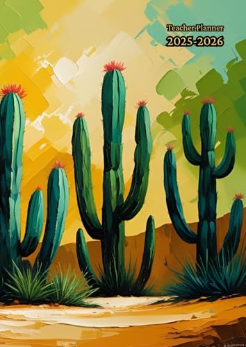 Teacher Planner 10 Periods A4: Cactus - Vertical Week To View With Register and ... Dated August To July - Academic Year Lessons Diary And Notebook - ... Non Ring Binder - Gift For Uk Men and Women.
