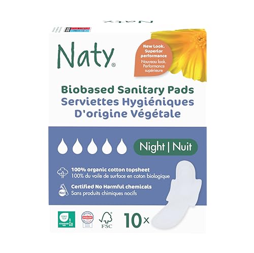 Naty Binda Night med vingar | 100% certifierad ekologisk bomull mot huden | Certifierat hudsäker | Oparfymerad, 0% vanlig plast | Absorberande skydd för natten | 10 bindor