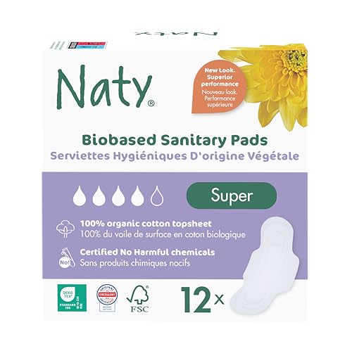 Naty Binda Super med vingar | 100% certifierad ekologisk bomull mot huden | Certifierat hudsäker | Oparfymerad, 0% vanlig plast | Absorberande skydd | 12 bindor