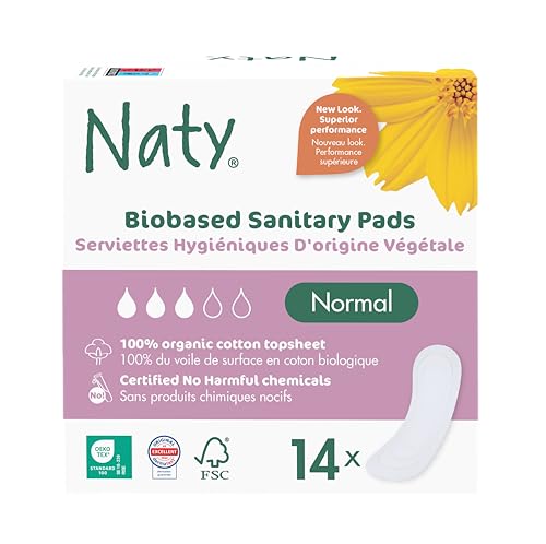 Naty Binda Normal utan vingar | 100% certifierad ekologisk bomull mot huden | Certifierat säker för huden | Oparfymerad, 0% vanlig plast | Absorberande skydd | 14 bindor