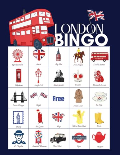 London Bingo: 32-Player British Bingo Game Set perfect for UK Royal Celebration Activities, Street Parties, and Union Jack Party Favors