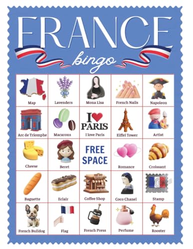 France Bingo Game: 38 player France Party Game, France Activity, Bastille Day Celebration Game, Travel Activity Game