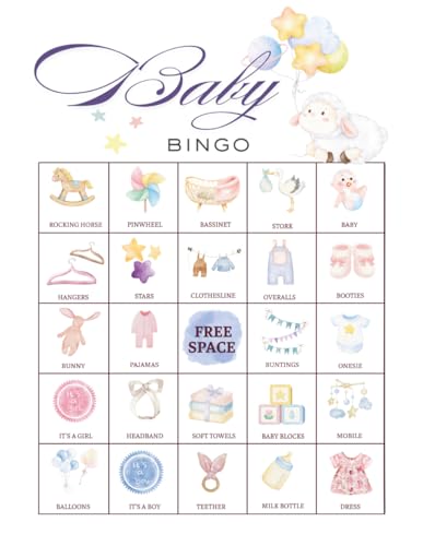 Baby Bingo: 32 players game for baby shower, Gender Reveal Party, New parent celebration game, Baby Sprinkle Activity