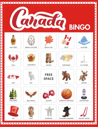 Canada Bingo: 32 player game for Canadian Party Game, Canada Day 1 July celebration, Classroom Heritage Days