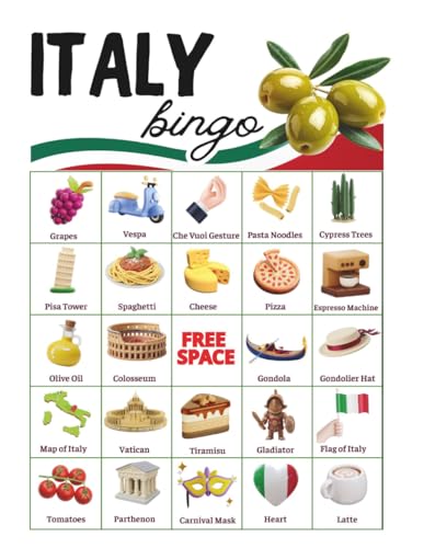 Italy Bingo Game: 32 Player Italy Party Game, Italy's National Day, Travel Activity Game