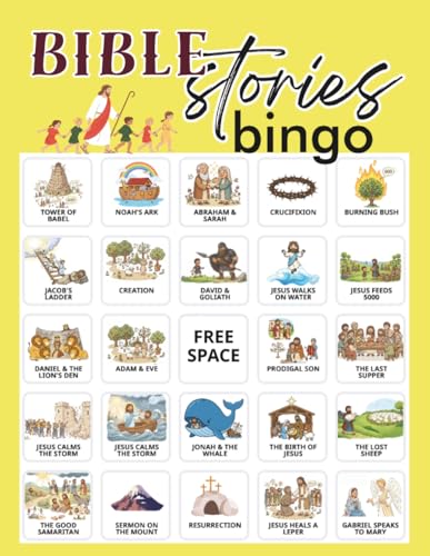 Bible Stories Bingo: 32 Player Game for Vacation Bible School, Kids Christian Sunday Church, Bible Games Party Activity