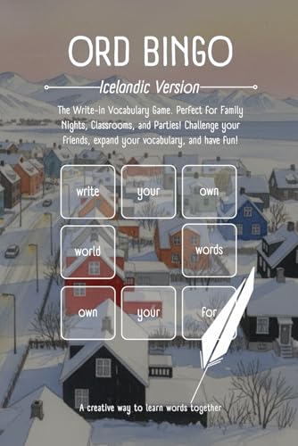 Ord Bingo - Icelandic version: The Write-in Vocabulary Game. Perfect for Family Nights, Classrooms, and Parties! Challenge your friends, expand your vocabulary, and have fun!