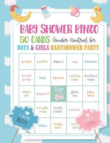 Baby Shower Bingo - 50 Cards - Gender Neutral for Boys & Girls Baby Shower Party: Printed Party Baby Shower Game And Activity, Fun, Unique, And Easy To Play