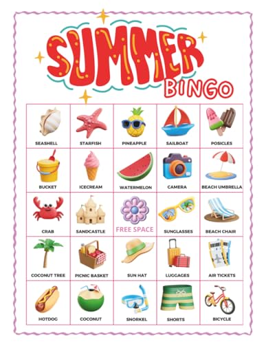Summer Bingo Game: 38-Player Vacation & Beach Party Games for Road Trips, Summer Camp, and Screen-Free Travel Entertainment