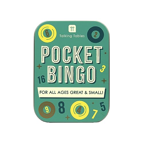Talande bord fickstorlek återanvändbart bingo resespel | förpackad i ett presentabelt robust tennfodral, klassiskt spel som innehåller 48 ark och siffror och pennor eller hemlig jultomte