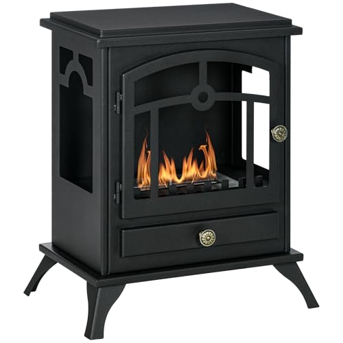HOMCOM Ethanol Kamin, 7000BTU Bio-Ethanol Kamin, 1,2L Ethanol Ofen mit Feuerdeckel, Bioethanol Ofen mit 3h Brenndauer, Standkamin für bis 25 m², Stahl, Schwarz