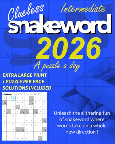 Clueless Snakeword 2026 - A Puzzle A Day - Intermediate - EXTRA LARGE PRINT - 1 Puzzle Per Page - Solutions Included
